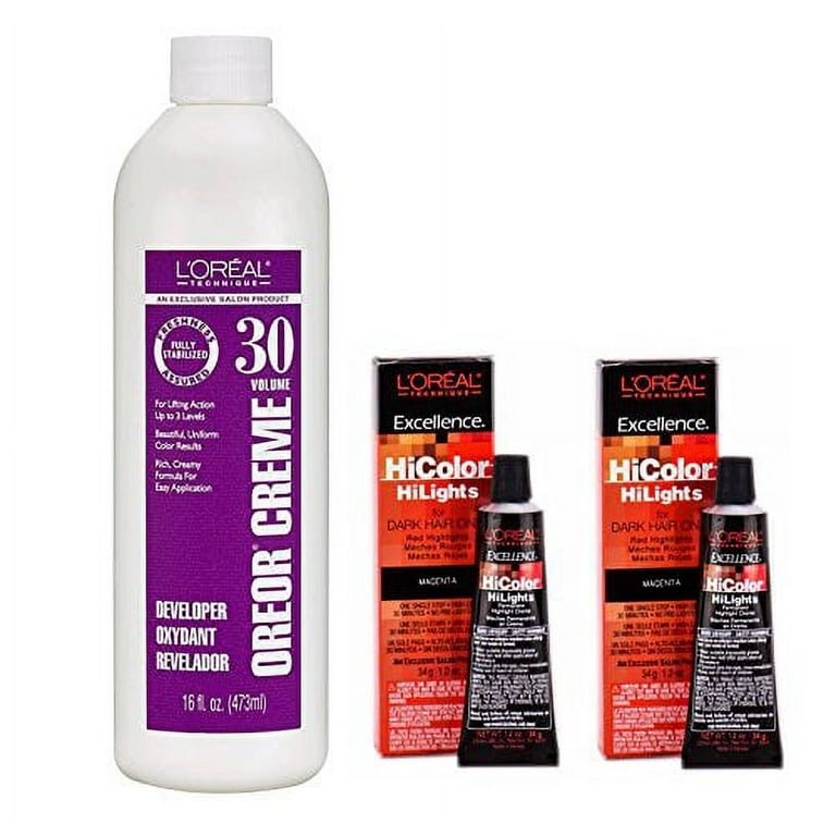 Loreal Hicolor Hilights For Dark Hair Only Magenta 2 Pack With 16 Ounce Oreor Creme 30 Developer Walmart Com